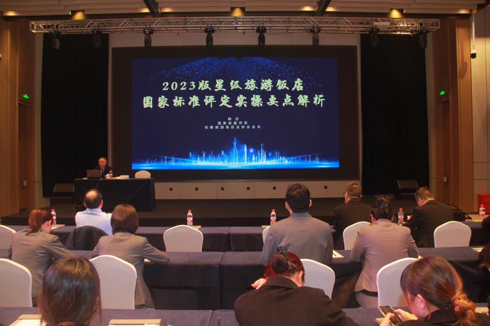 培训内容重点聚焦饭店运营质量的关键环节,以《旅游饭店星级的划分与评定》(GB/T14308-2023)国家标准及《安徽省文化和旅游厅“双招双引”和产业培育细分赛道工作机制》相关要求为指导,特别是对标国家标准附录C《饭店运营质量评价表》进行了系统化讲解与实践指导。