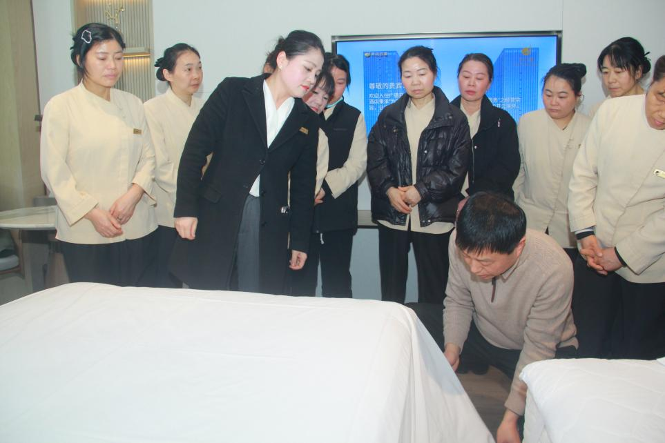 在为期五天的系统培训中,课程设置紧密围绕上述目标展开,内容系统而全面,不仅涵盖《旅游饭店星级的划分与评定》政策权威解读,更深入进行了餐饮、前厅、客房三大核心板块的基础理论精讲。授课专家深入各岗位进行现场指导教学,全方位助力酒店夯实服务根基、规范操作流程;有效提升员工对星级服务规范的掌握程度与服务技能水平,促进酒店资源高效流转。